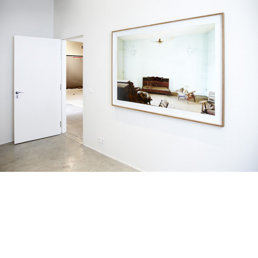 La proposition de l’artiste franco-ivoirien est composée de photographies qui ont la particularité de contenir les indices, les récits et les traces de vies oubliées, laissées pour compte ou dans l’ombre. Sur le fil ténu de l’entre-deux états des choses et éveillant des projections passées, les clichés en petits formats encadrés sont présentés en groupes structurés. L’installation se dévoile alors comme un parcours tout en sensibilité: celle de la couleur altérée par le temps, d’une forme inattendue dans un lieu en désuétude ou d’une composition surprenante naturellement laissée par les vagues successives de passants. Face à la pluralité des formes et aux fragments recomposés en une même œuvre, surgit un grand tirage de l’appartement inhabité de l’ancien directeur de l’Imprimerie nationale de Porto Novo au Bénin.